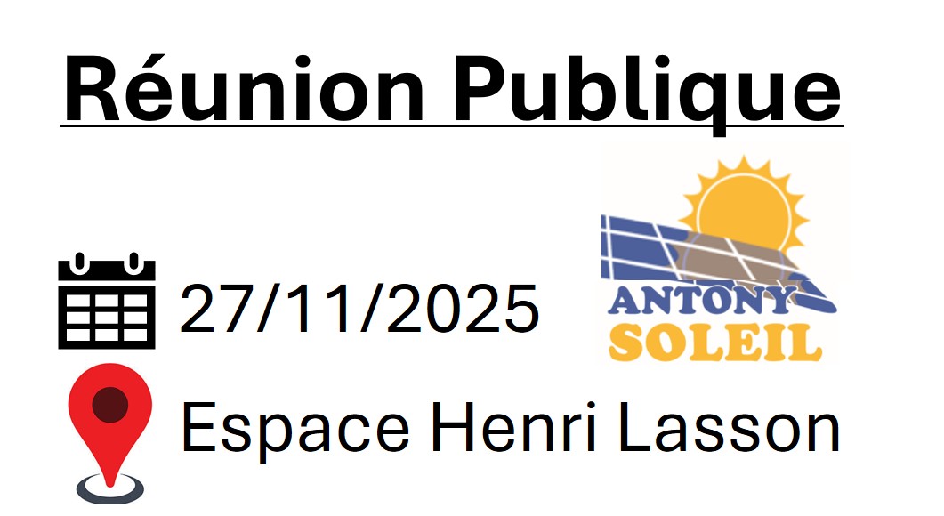 L'association Antony Soleil est ravie d'inviter tou.te.s les citoyen.ne.s d'Antony à la prochaine réunion publique le 27/11/2025 à partir de 19h30 à l'Espace Henri…